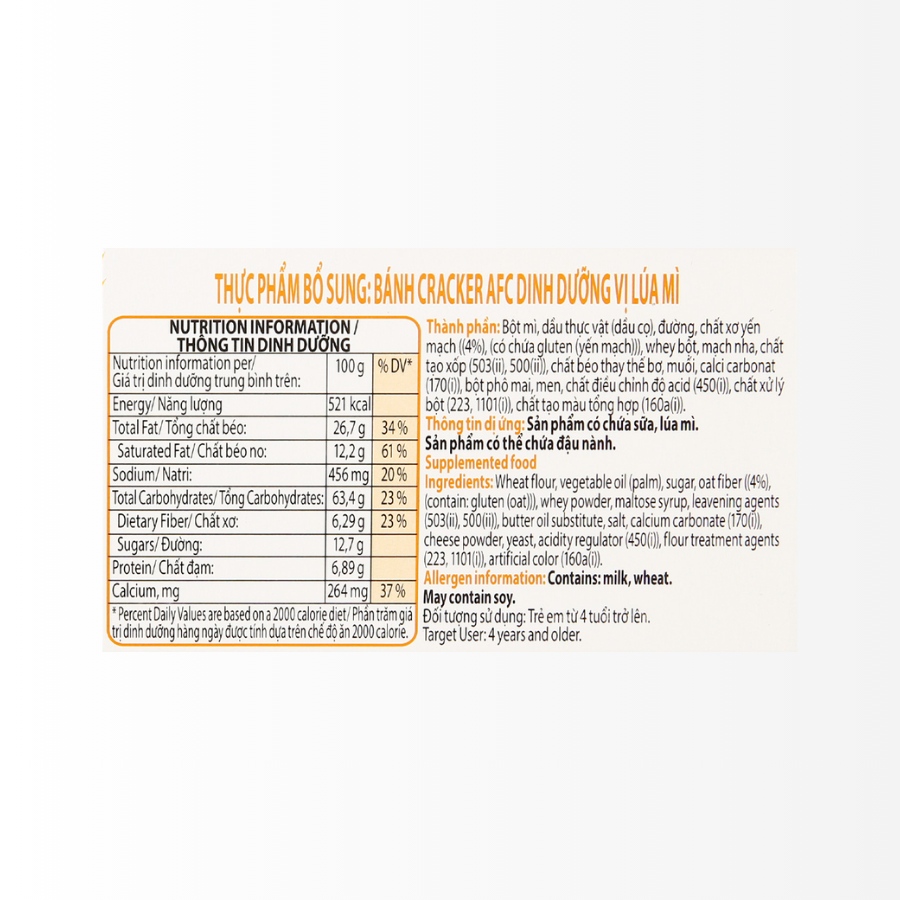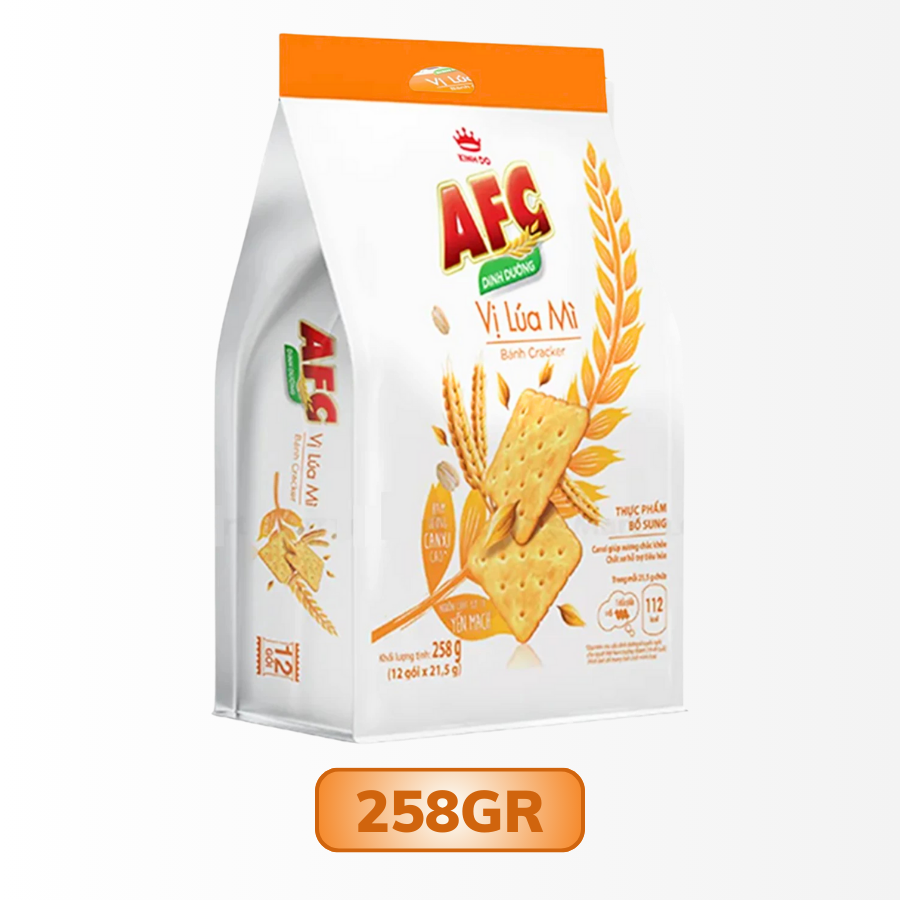 Bánh Quy AFC Vị Lúa Mì được làm từ nguyên liệu cao cấp, cho hương vị trọn vẹn trên từng chiếc bánh. Bánh dễ ăn, hương vị thơm ngon, giòn tan rất hấp dẫn, phù hợp cho mọi khẩu vị người dùng.