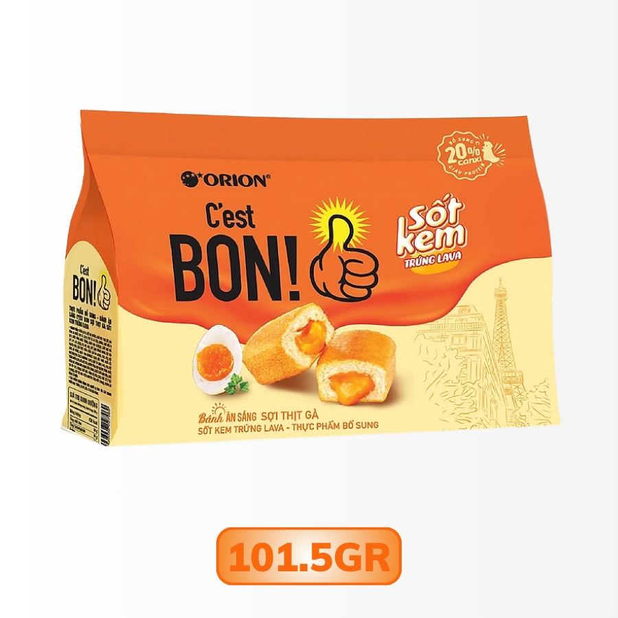 Bánh ăn sáng sợi thịt gà sốt kem trứng Lava C'est Bon Orion túi 8 cái với lớp trứng lava tan chảy sẽ khiến bạn trót đắm say ngay từ lần chạm môi đầu tiên.