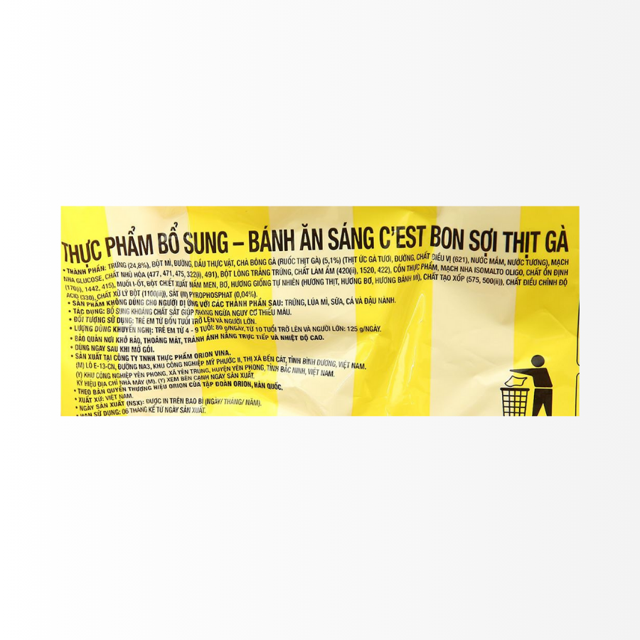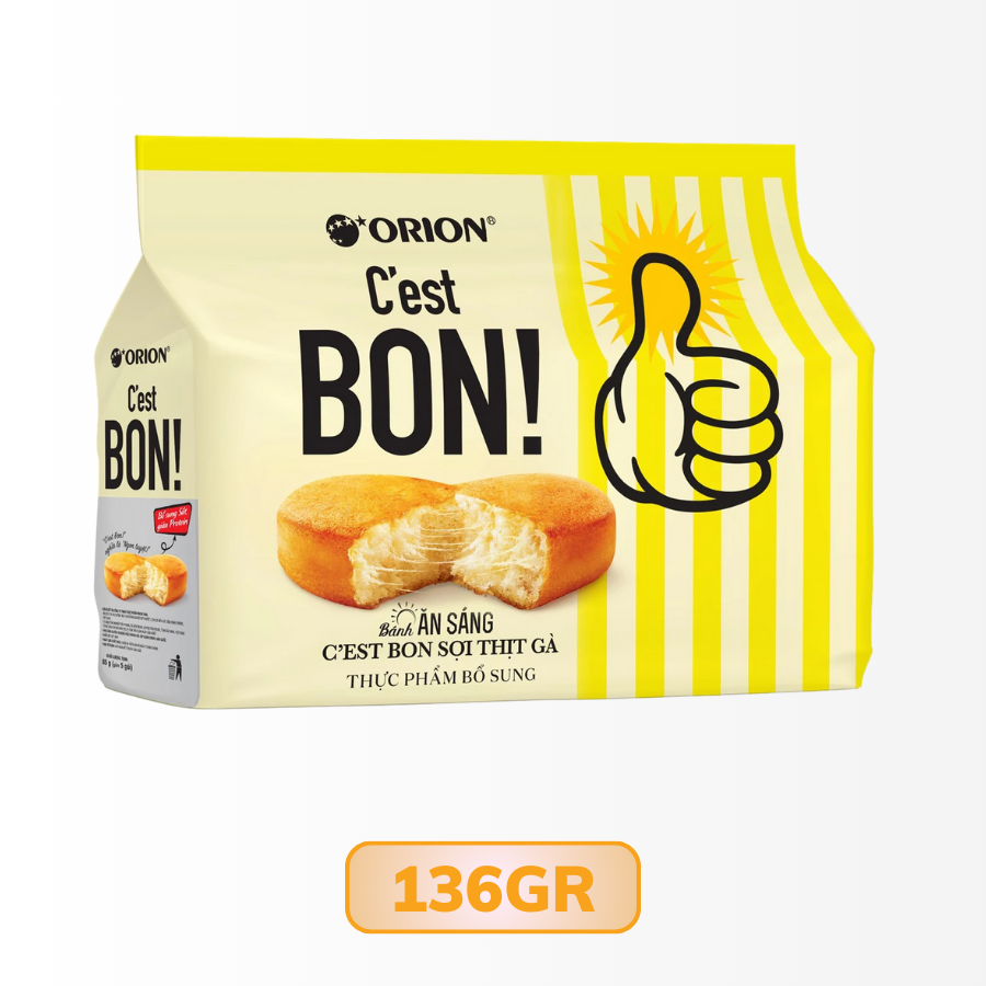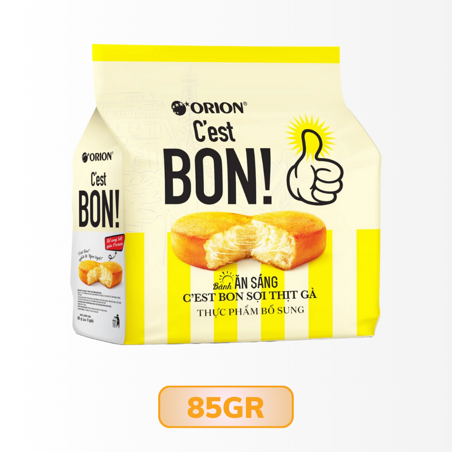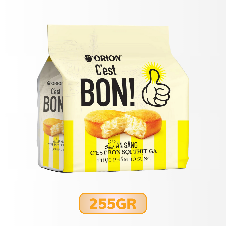 Bánh ăn sáng mềm mịn, xốp xốp hấp dẫn. Bánh ăn sáng sợi thịt gà Orion C'est Bon có thể dùng ngay hoặc dùng kèm 1 ly sữa hoặc nước trái cây cho buổi sáng đủ chất. Bánh Orion cho bạn bữa sáng đủ chất và tiết kiệm thời gian.