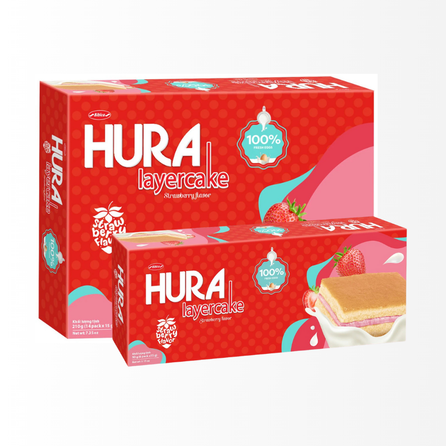 Bánh bông lan Hura layer cake Bibica là sản phẩm thuộc dòng dòng sponge cake với với lớp kem bơ và sữa thơm lựng, béo ngậy, hấp dẫn