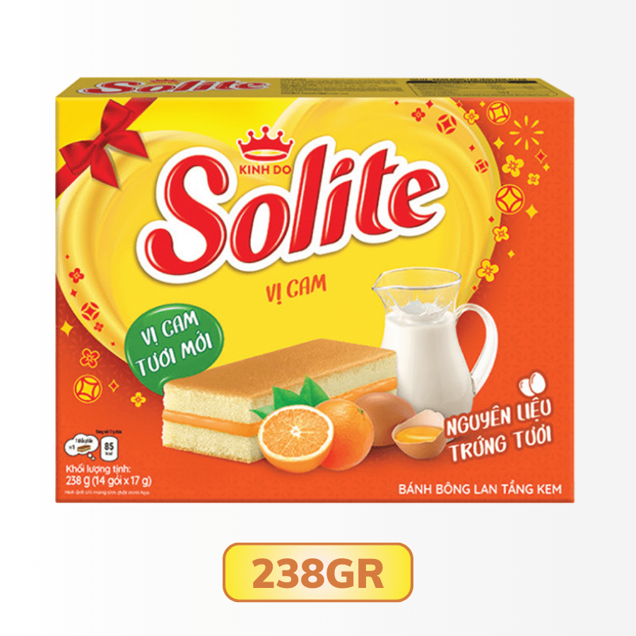Solite là một thương hiệu nổi tiếng trong ngành thực phẩm, đặc biệt là các sản phẩm bánh kẹo, thuộc tập đoàn Kinh Đô, nay là Mondelez Kinh Đô. Solite nổi bật với những dòng bánh bông lan mềm mịn, thơm ngon, được nhiều người yêu thích. Thương hiệu này luôn chú trọng đến chất lượng và hương vị sản phẩm, mang đến những trải nghiệm ẩm thực tuyệt vời cho người tiêu dùng. Với quy trình sản xuất hiện đại và tiêu chuẩn an toàn thực phẩm nghiêm ngặt, Solite đã khẳng định vị thế của mình trong lòng người tiêu dùng Việt Nam.