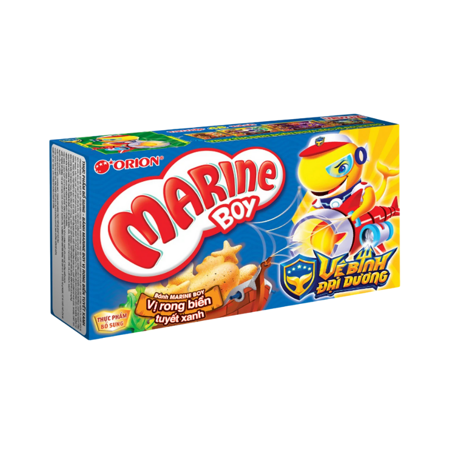 Bánh Cá Marine Boy với hình dạng độc đáo 16 sinh vật biển với câu chuyện thú vị bên trong để các bé vừa ăn, vừa học, vừa chơi! Bánh nướng không chiên, sản phẩm dinh dưỡng, bổ sung canxi với nhiều chương trình khuyến mãi hấp dẫn. Thưởng thức ngay bánh cá vị Gà BBQ đậm đà, giòn giòn với câu chuyện phiêu lưu hấp dẫn, vui nhộn!