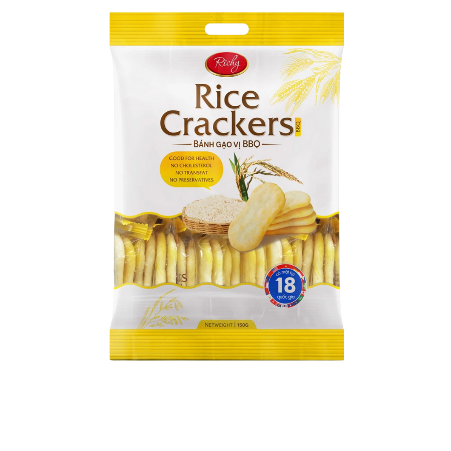 Bánh Gạo Rice Crackers Richy Vị BBQ 150g tự hào là một trong những thương hiệu Việt Nam có mặt và tạo niềm tin tại thị trường Hàn Quốc khó tính. Mỗi chiếc bánh được làm từ nguyên liệu tươi ngon, không chất bảo quản và chất độc hại, đảm bảo sức khỏe cho người tiêu dùng.
