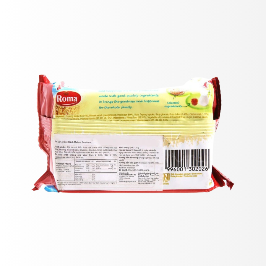 Bột lúa mì, dầu thực vật (chứa chất chống oxy hóa BHA), đường, tinh bột sắn, glucose, sữa bột, chiết xuất mạch nha, muối, men, bột nổi, hỗn hợp vitamin B1, B2, B6, B12 (0.01%).