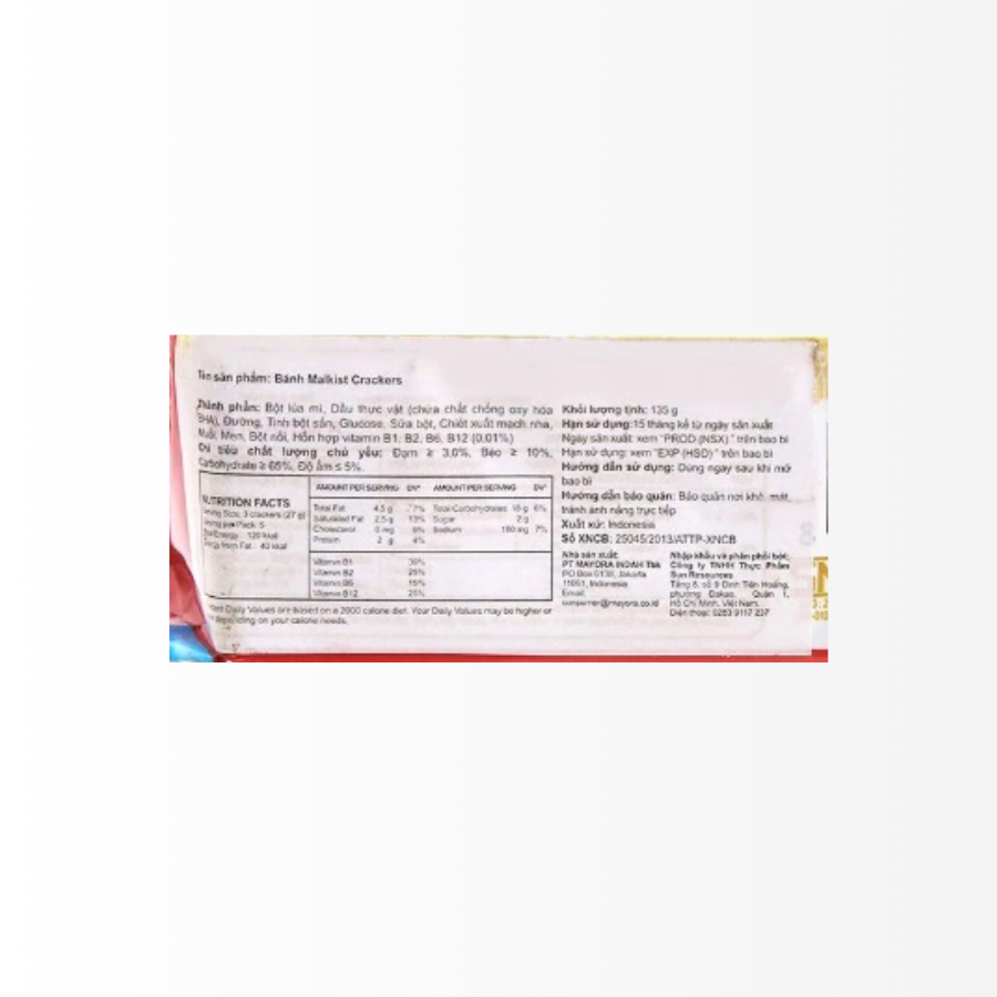 Bánh quy Malkist thơm giòn, được rắc đường ngọt ngào. Sản phẩm có bổ sung các chất dinh dưỡng như vitamin, B1, B2, B6, B12,... Bánh phù hợp để nhâm nhi cùng trà, ăn vặt. Phù hợp với mọi lứa tuổi.