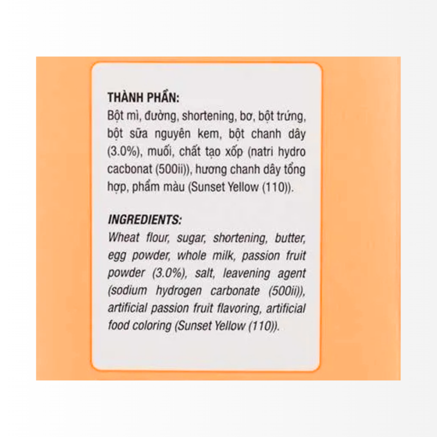 Kết hợp giữa vỏ bánh giòn tan được làm từ lúa mì thượng hạng cùng với lớp kem Cam chua ngọt mát lành, Bánh Cookies Lai Phú Kem Cam 350G là sự cân bằng hoàn hảo giữa vị chua thanh nhẹ của cam với vỏ bánh mỏng giòn, đem đến cảm giác vừa quen thuộc vừa mới lạ.