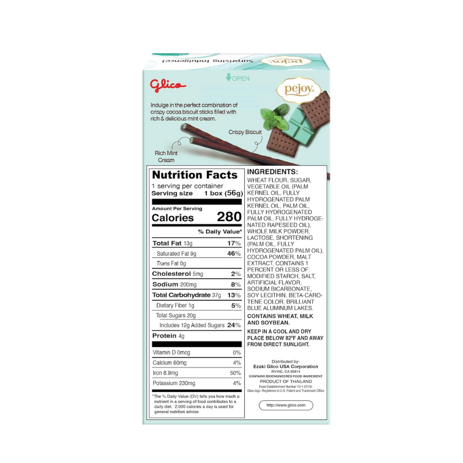 Bánh que socola Pejoy hương bạc hà là sản phẩm được chế biến từ các thành phần chất lượng đảm bảo vệ sinh an toàn thực phẩm. Sản phẩm không chứa hóa chất bảo quản, chất phụ gia ảnh hưởng đến sức khỏe người tiêu dùng. Sản phẩm giúp người dùng tiết kiệm được thời gian chế biến, thích hợp cho người bận rộn không có nhiều thời gian.