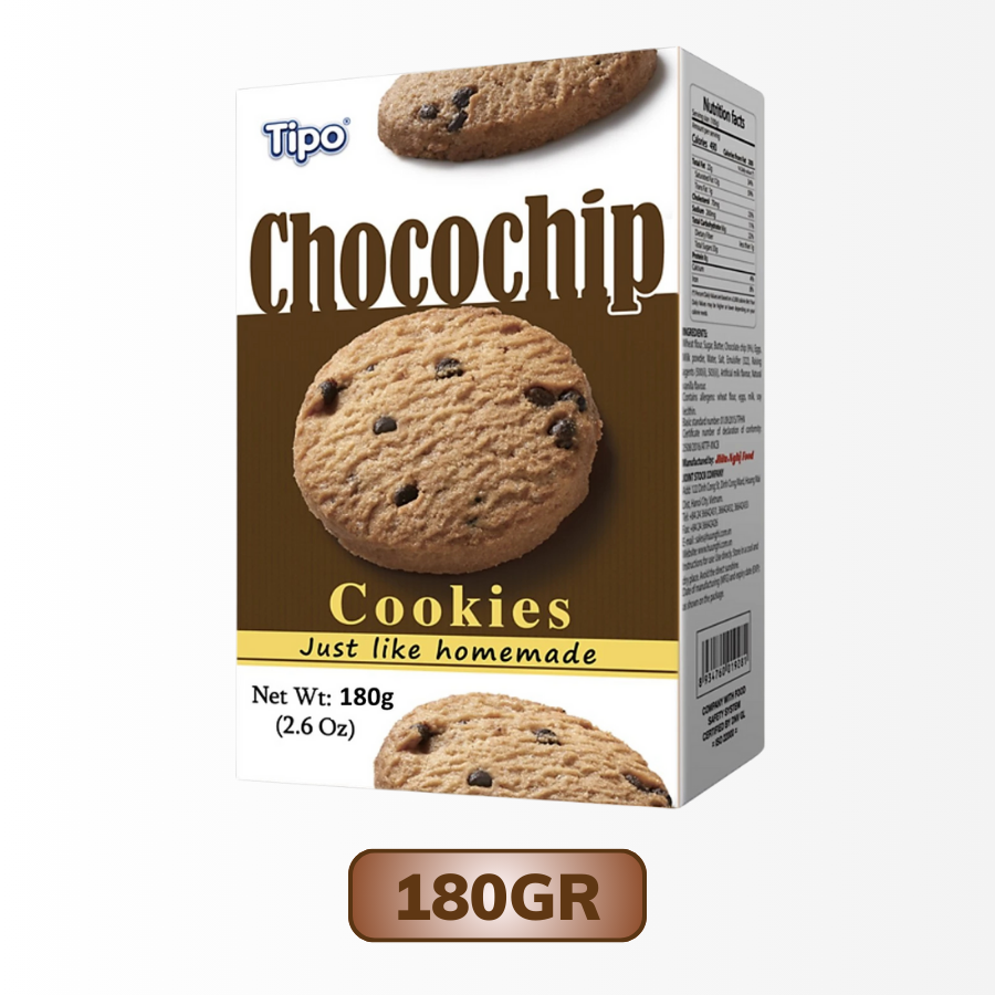 Những người yêu thích sô cô la chắc chắn sẽ yêu thích Tipo Chocochip cookies bởi vị đắng đặc trưng của sô cô la nguyên chất hòa quyện cùng hương vị thơm ngậy của bơ sữa. Sản phẩm nhỏ gọn, tiện lợi khi mang theo khi đi học, dã ngoại… Thông tin sản phẩm: - Thành phần nguyên liệu: Bột mì, trứng, đường, hạt socola, sữa bột, nước, muối, ,... - Quy cách: