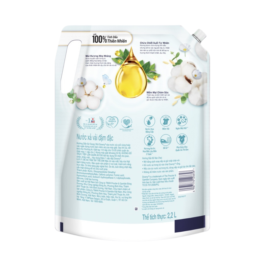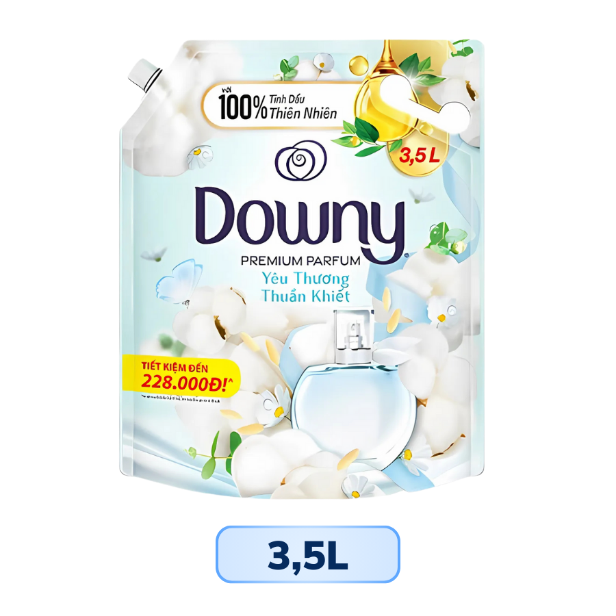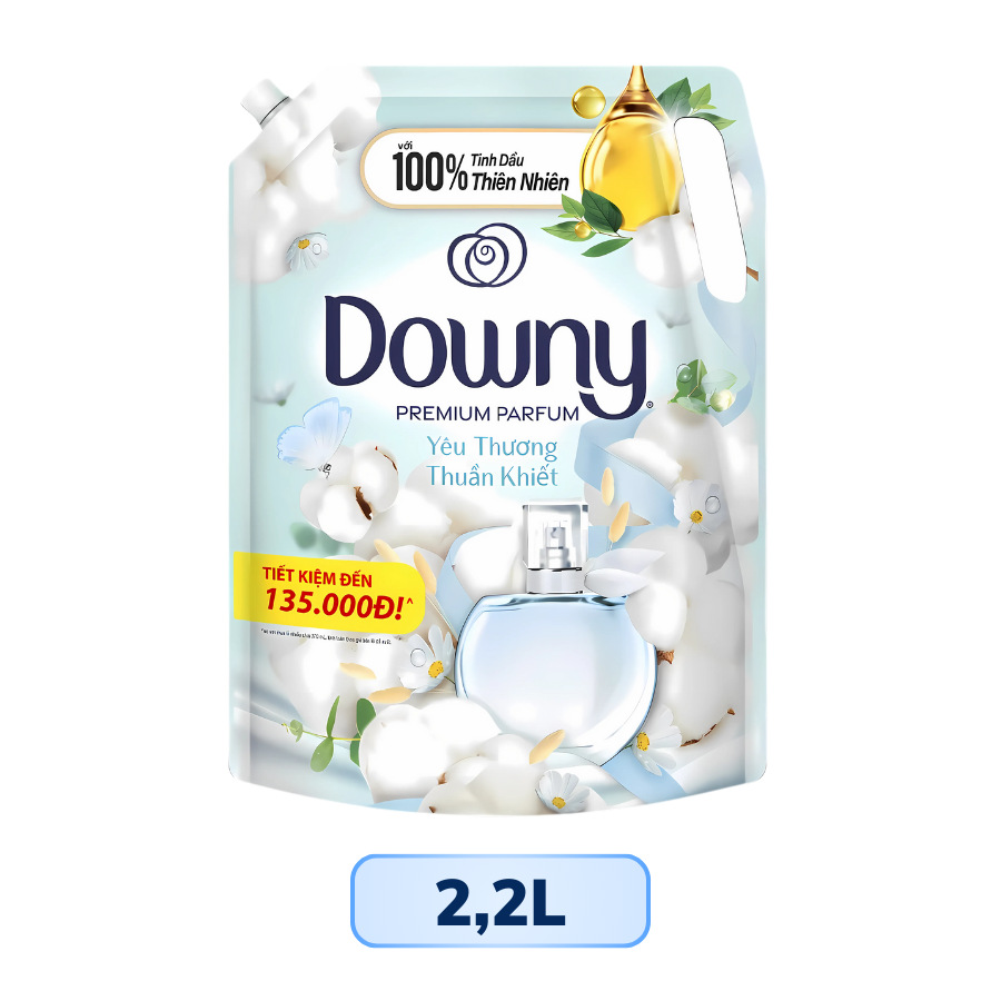 Là thương hiệu nước xả hàng đầu được nhiều chị em nội trợ tin dùng, nước xả vải Downy được chiết xuất từ 100% tinh dầu thiên nhiên, mang hương thơm thanh khiết, dịu nhẹ. Nước xả vải Downy Yêu thương thuần khiết túi 2.2 lít mang khả năng thấm sâu và làm mềm vải hiệu quả, giữ được màu sắc tự nhiên.