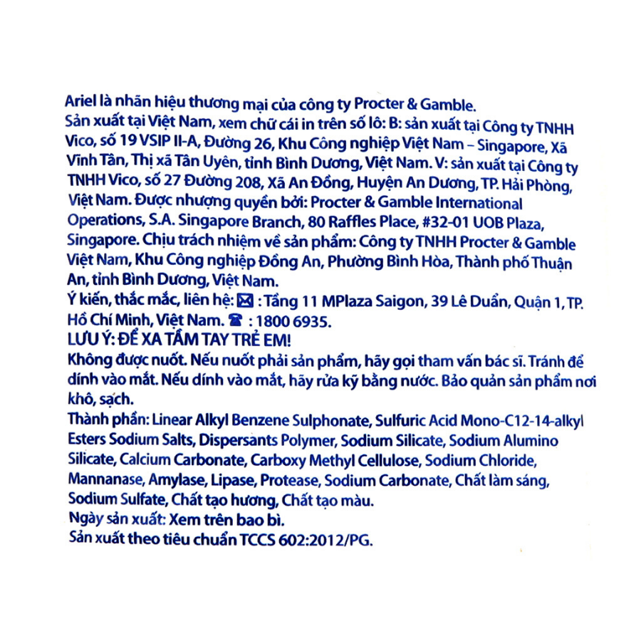 Bột giặt Ariel cần được bảo quản ở nơi khô ráo, thoáng mát và sạch sẽ.