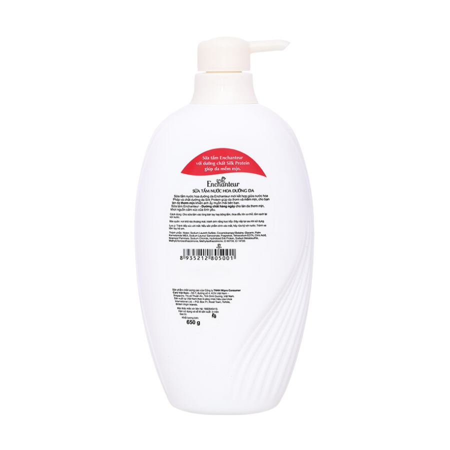 + Sữa tắm Enchanteur với công thức đặc biệt giàu dưỡng chất Silk Protein mang đến làn da lụa là mịn màng.