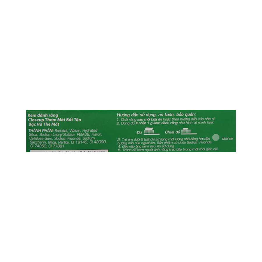 Kem đánh răng Closeup thơm mát 3 cực mang lại hơi thở thơm mát dài lâu cùng tác động sạch khuẩn* cho cả răng trong cùng *Đề cập đến vi khuẩn trong miệng