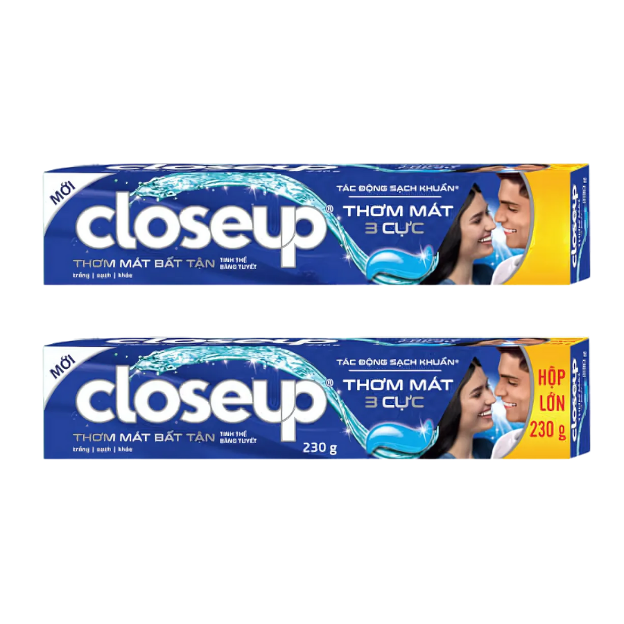 Kem đánh răng Closeup thơm mát 3 cực mang lại hơi thở thơm mát dài lâu cùng tác động sạch khuẩn* cho cả răng trong cùng *Đề cập đến vi khuẩn trong miệng