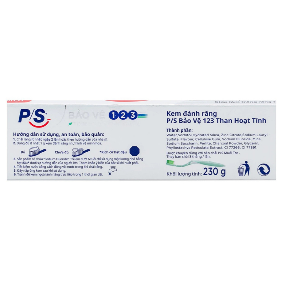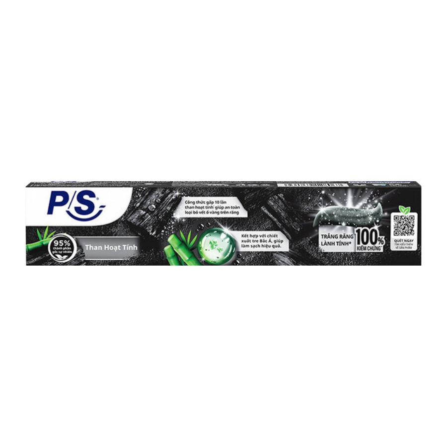 Với công dụng vượt trội, sản phẩm kem đánh răng chất lượng của P/S được đánh giá tốt nhất tại Việt Nam. Kem đánh răng P/S bảo vệ 123 than hoạt tính 180g làm sạch các vết ố, mảng bám từ thức ăn, trả lại độ trắng tự nhiên cho răng, mang lại hiệu quả trắng vượt trội.