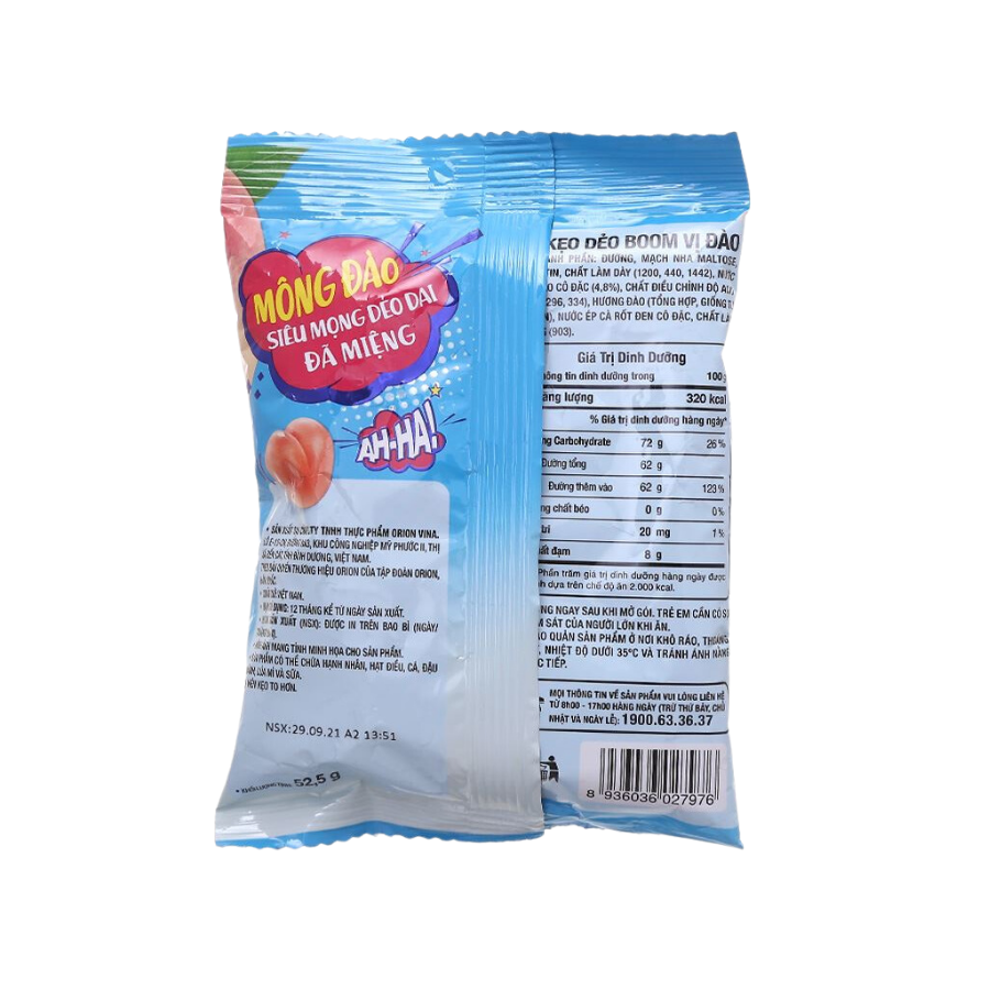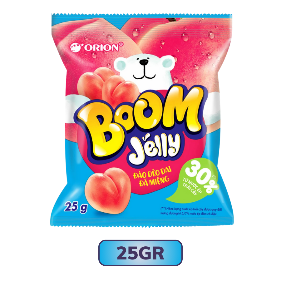 Là dòng kẹo đầu tiên của Orion được sản xuất tại Việt Nam. Kẹo dẻo BOOM được làm từ 30% trái cây thật, vị chua chua ngọt ngọt, hình dáng đào, dâu, nho đáng yêu, ngộ nghĩnh, được đánh giá là kẹo dẻo dai dai mềm mềm đúng ý thích của trẻ con Việt Nam.