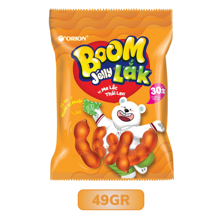 Kẹo Dẻo Boom Jelly Lắk Orion Vị Me Lắc Xí Muội có nguồn gốc từ những quả me Thái chất lượng cao được chọn lọc kỹ càng. Điều này đã mang đến vị chua chua ngọt ngọt cho từng viên kẹo dẻo hình quả me xinh xắn. Khi thưởng thức sản phẩm, bạn sẽ dễ dàng cảm nhận được sự thanh mát ấn tượng mà sản phẩm mang đến như làn gió sảng khoái trong mùa hè nóng nực. Kết cấu dai mềm khi nhai cùng vị trái cây hấp dẫn đã được cân bằng hoàn hảo, tạo nên trải nghiệm vị giác vui nhộn cho người thưởng thức. Những quả me đến từ xứ sở Chùa Vàng với vị ngọt thanh kèm theo chút chua nhẹ là món ăn vặt ưa thích của rất nhiều bạn trẻ.