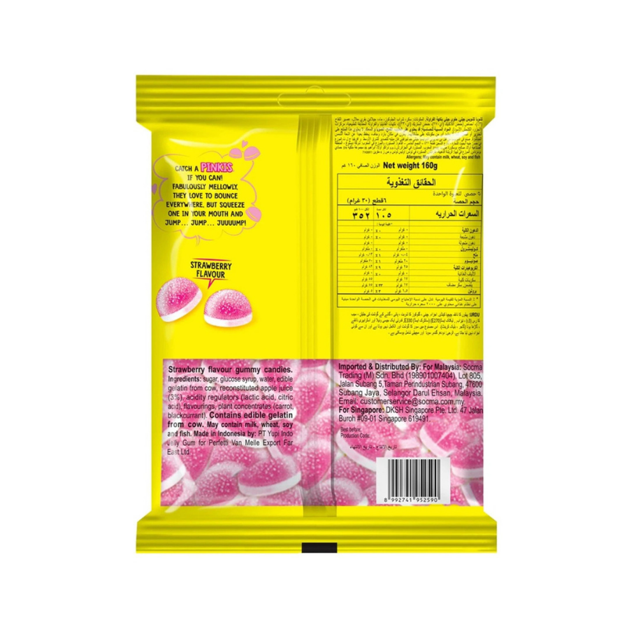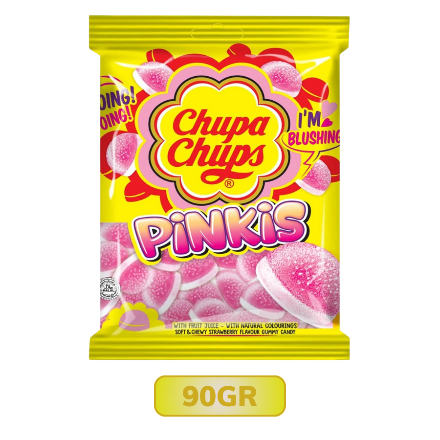Kẹo Dẻo Chupa Chups Pinkis Hương Dâu Kem (Dây 8 gói) có hình dáng tròn tròn, cấu trúc bông mềm, thơm dịu, dẻo dẻo và dai dai. Màu hồng bắt mắt cùng với lớp đường ngọt ngào bọc ngoài. Hương vị dâu kem dễ ăn, phù hợp với mọi đối tượng, nhất là các bé. Để thưởng thức, bạn chỉ cần mở gói và ăn trực tiếp. Với những viên kẹo thơm hương kem dâu phủ lớp đường ngọt ngào, từ Chupa Chups - thương hiệu kẹo dẻo nổi tiếng nhất có rất nhiều loại kẹo mới lạ, nhiều hương vị và màu sắc hấp dẫn