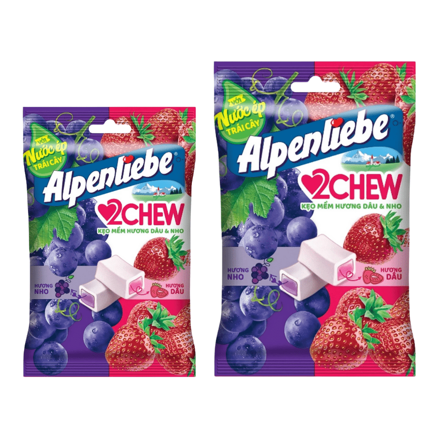 🔸 Thành phần: Đường, si rô glucoza, dầu dừa hydro hóa, gelatin, chất điều chỉnh độ chua, acid lactic, acid malic béo, este của sucrose với các acid béo, hương dâu giống tự nhiên, màu tổng hợp.