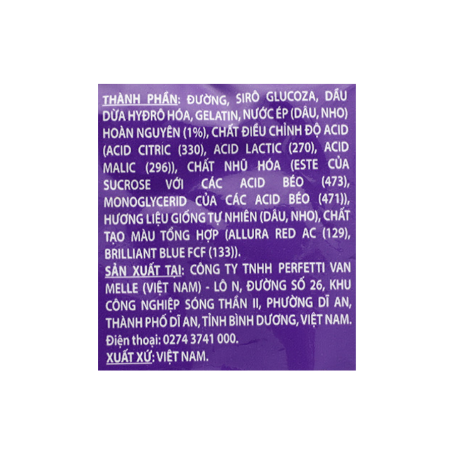 🔸 Xuất xứ: Sản phẩm được sản xuất và đóng gói tại Việt Nam theo quy trình khép kín từ PERFETTI Ý