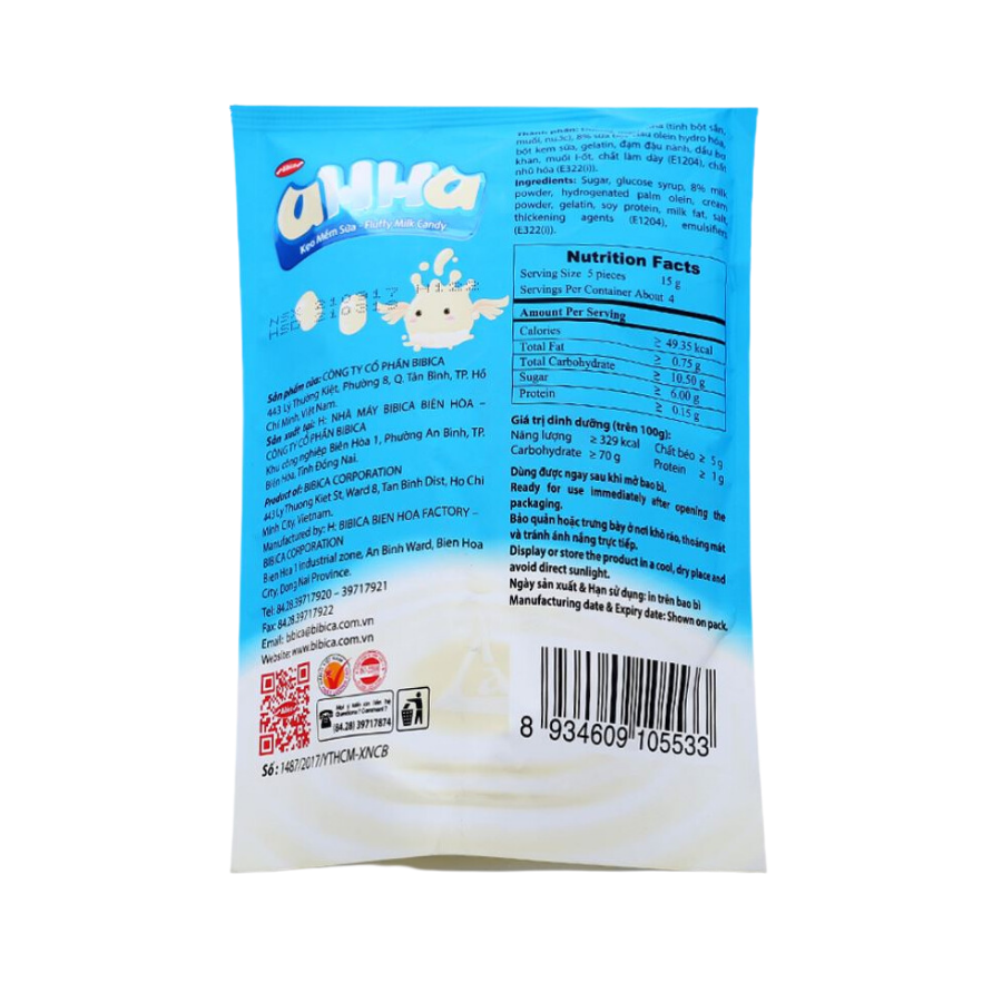 Kẹo mềm Bibica Sumika sữa và aHHa sữa đủ vị gói nhỏ tiện lợi là sản phẩm của Bibica là thương hiệu bánh kẹo nổi tiếng được nhiều người yêu thích tại Việt Nam. Một trong những sản phẩm nổi bật nhất của thương hiệu này là kẹo cứng Migita, Kẹo Bốn mùa, Kẹo Tứ quý, Bánh Gooka Crackers,...