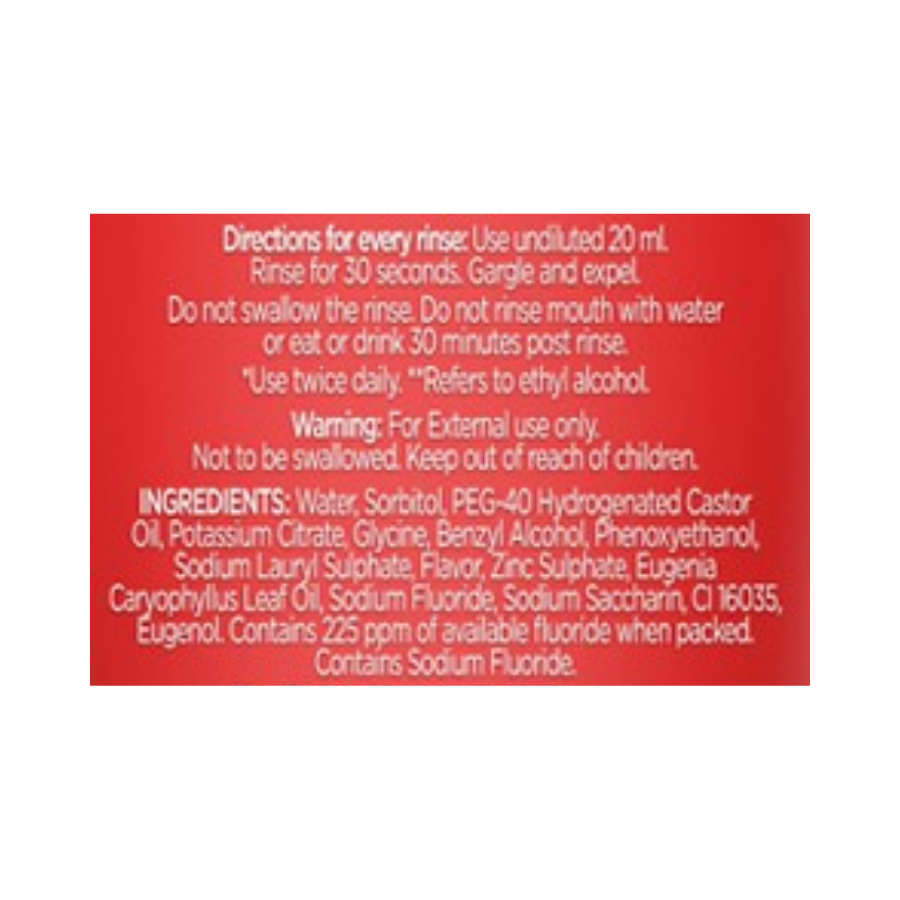 Sau khi đánh răng, súc miệng với 20ml trong 30 giây rồi nhổ đi. Sử dụng 2 lần/ngày |
