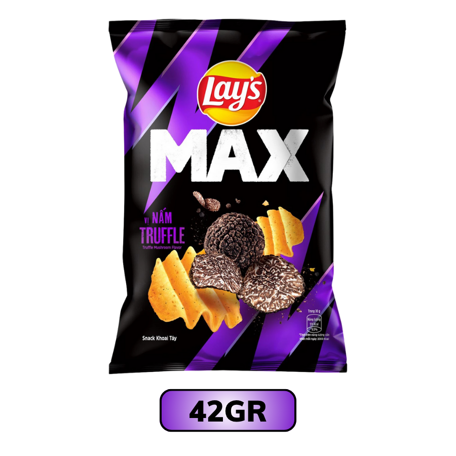 Sự kết hợp bùng nổ giữa những lát khoai tây tươi ngon và nấm Truffle đen nguyên gốc tạo nên sản phẩm snack khoai tây vị nấm truffle Lay's Max gói 42g mới lạ. Đây là sản phẩm mới mang thương hiệu snack Lay's nổi tiếng với các loại bánh snack đa dạng hương vị để bạn lựa chọn.