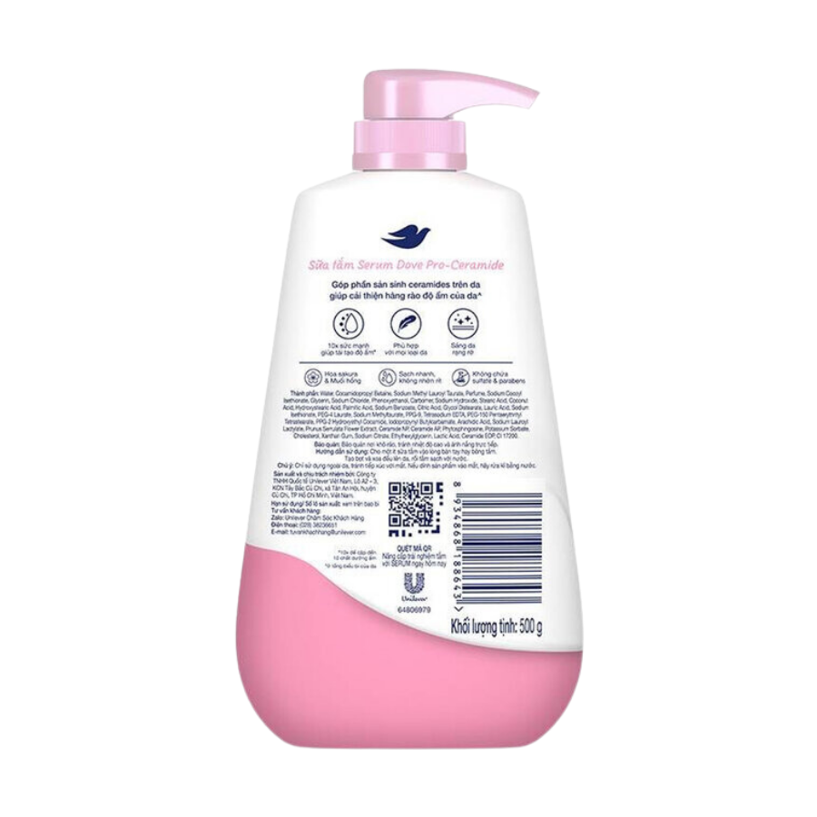 Lần đầu tiên sữa tắm Dove mang trong mình Serum Pro-ceramide độc quyền, chứa các phân tử ceramide kích thước nhỏ dễ thẩm thấu nhanh, thúc đẩy hình thành ceramide và hàng rào độ ẩm của da, cho da căng bóng và đàn hồi sau mỗi lần tắm.