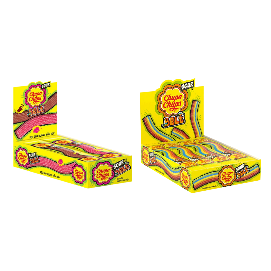 Kẹo Chupa Chups Cầu Vồng là một loại kẹo dẻo hương vị trái cây với màu sắc bắt mắt như một chiếc cầu vồng sau mưa lung linh khiến các bạn nhỏ thích thú Kẹo Chupa Chups Cầu Vồng được sử dụng ăn trực tiếp với độ dai ngon mềm dẻo và vị chua chua của dải kẹo kết hợp với vị ngọt của những hạt đường phủ trên nó mang lại hương vị thơm ngon khó cưỡng. Kẹo Dẻo Chupa Chups Sour Belt dài 1m 1 dây x 55g
